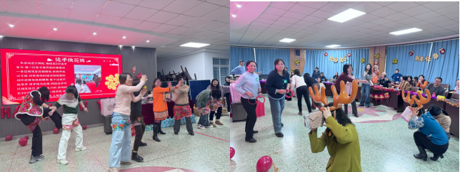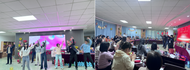 随后,联欢会在一段精心制作的开场视频和一系列暖场游戏中拉开序幕,迅速点燃了现场的热情。学院领导班子及学工办老师们以一段充满活力的舞蹈串烧开场,为联欢会注入了无限活力。各教研室精心准备的节目依次上演,包括舞蹈、歌曲、影视配音和三句半等多种形式,充分展示了教职工的多才多艺和积极向上的精神风貌,每个节目都洋溢着正能量,共同迎接新年的到来。