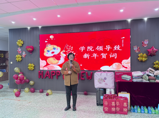 首先,院长王蓉代表学院领导班子致新年贺词。她对过去一年学院取得的成绩表示肯定,对全体教职工的辛勤工作表示感谢,并鼓励大家在新的一年里继续团结协作,共创佳绩。