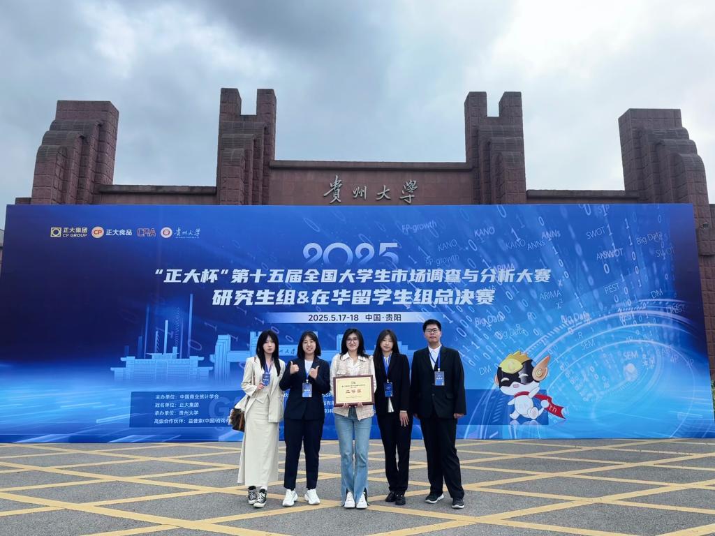 近日,第十五届全国大学生市场调查与分析大赛研究生组及在华留学生组总决赛于贵州圆满收官。作为国内市场营销与统计学领域的顶级赛事,本次大赛吸引了全国1184所高校、超34万名学子踊跃参与,其中研究生与留学生赛道汇聚589所高校同台竞技。在这场高规格赛事中,我校今年会官方网站参赛团队凭借深厚的专业功底与卓越的协作能力,一举揽获国家级二等奖1项、省级一等奖1项、二等奖2项、三等奖4项,展现出强劲的学科实力。
