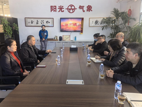 在锦州阳光气象科技有限公司,董事长闻宝民带领团队参观了气象监测设备研发与生产车间。作为国内气象观测设备领域的高新技术企业,该公司产品覆盖全国各省、自治区、直辖市,参与多个国家级气象监测项目。闻宝民董事长指出,企业始终坚持以市场为导向,形成了“研发—生产—销售-维护”的经营特色,企业注重员工的创新能力与行业认知,重点培养员工的工匠精神。王蓉院长详细介绍了学校及学院的基本情况及学科特色优势,在人才培养与供给、科技成果转化等方面可以与企业精准对接,并诚邀各公司来我校开展校园招聘。