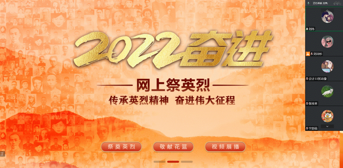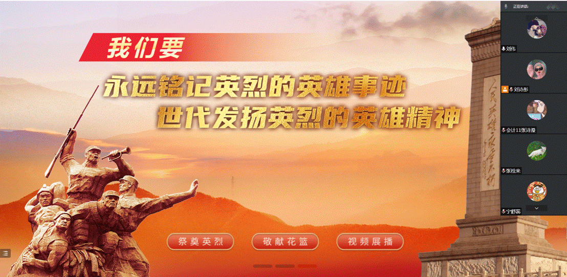 为深入传承弘扬英烈事迹和精神,引导学生党员传承弘扬革命先烈的优秀品质,引领崇尚、缅怀、学习、捍卫英烈的风尚,经管本科生党支部于4月6日18:00通过线上党员大会形式开展以“传承英烈精神 赓续红色血脉”为主题的“云端祭英烈”党日活动。