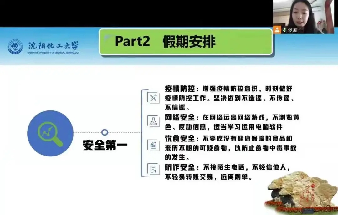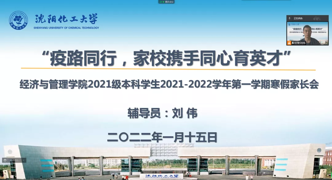 2021级新生入学刚满一学期,再次与家长网络相聚,倍感亲切。辅导员刘伟老师首先为家长介绍了2021级学生在校学习、生活情况,分享了孩子们的成长瞬间,着重强调疫情防护和假期安全。他动员学生,寒假期间,要积极参加家乡的社会实践活动,积极参加体育锻炼,注意防盗防骗等。会后,家长们纷纷在家长群内自发地分享对学校、学院、老师的感激之言。