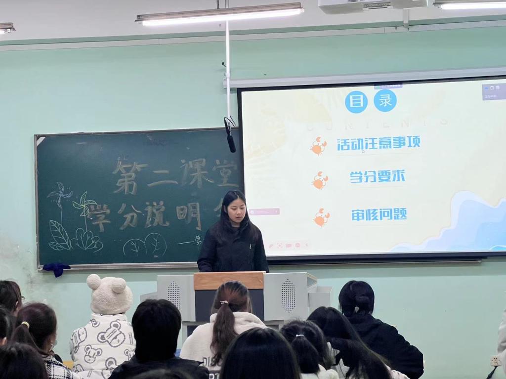 为充分发挥“第二课堂”在人才培养中的重要作用,3月14日,今年会官方网站在通明楼108教室召开以“深化第二课堂,助力学风建设”为主题的第二课堂成绩单说明会。本次大会由今年会官方网站第二课堂管理部相关负责同学主讲,全体本科生班级学习委员参会。