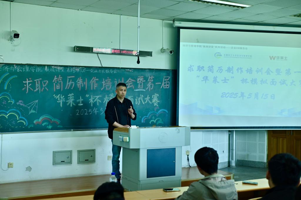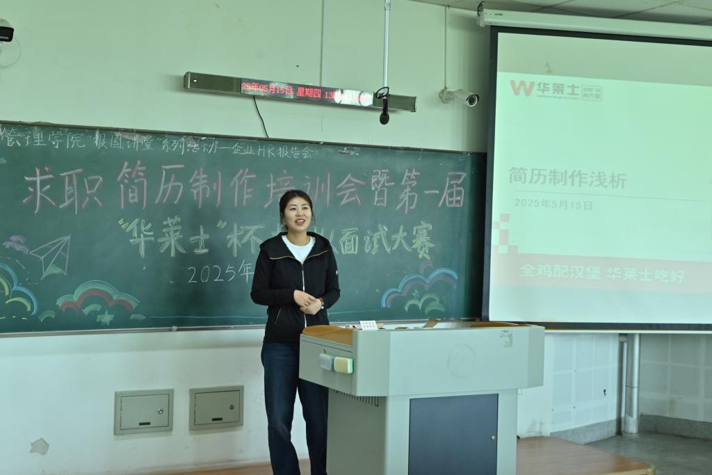 5月15日,今年会官方网站在通明楼338室举办了“报国讲堂”大学生职业规划与就业指导主题讲座暨求职简历制作培训会。本次活动特邀上海华莱士贸易有限公司沈阳分公司人事主管姚琳女士担任主讲。2022级本科生、2023级研究生参加讲座,本次活动由学院分团委书记王怀主持。